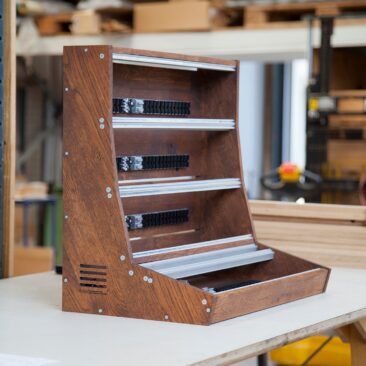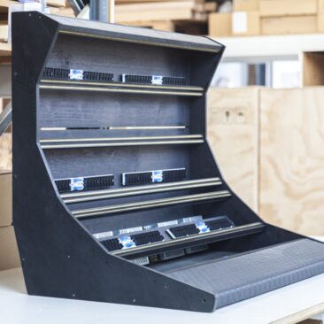 Nevertheless even every ‘standard’ case is always different and is made with dedication. With all options in the configurator and all the variations in amount of rows, width, finish, rails colour and power selection every case is unique.