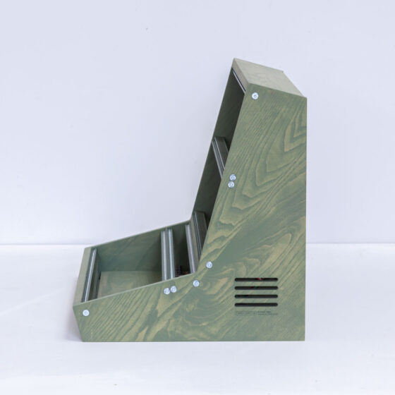 The cases can be made again on request, as long as I have enough solid ash in stock. Colour and case size can be chosen as well, contact me before order so I can enable the correct item in the webshop as they are only made on special request. Do note that the coloured rails on the picture is verry verry limited, so it can be that the case can be made in colour but only with black or aluminum coloured rails.
