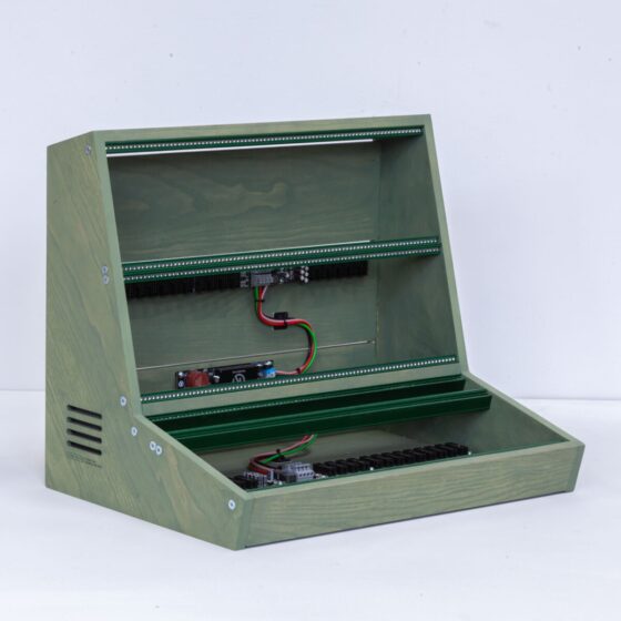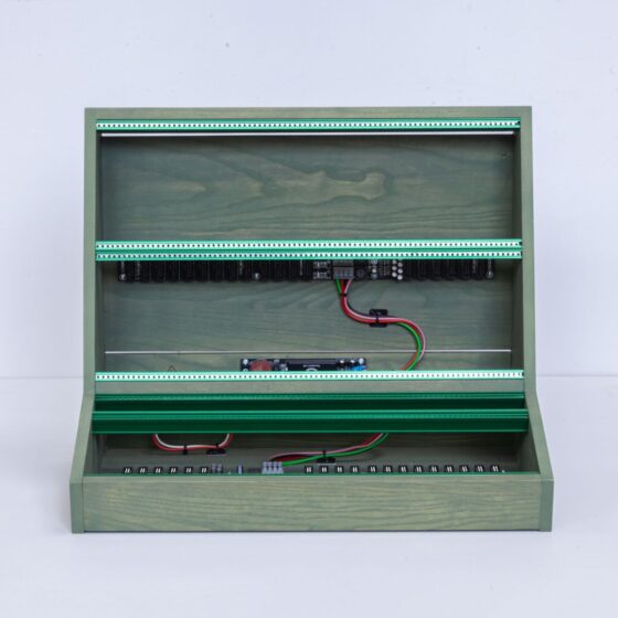 This 10U 84HP Eurorack case has been made of solid ash wood as a base material, a light colored and smooth-grained wood type. The ash wood is perfect for the coloured linseed oil I use, a natural finish based on pure linseed oil & natural pigments.