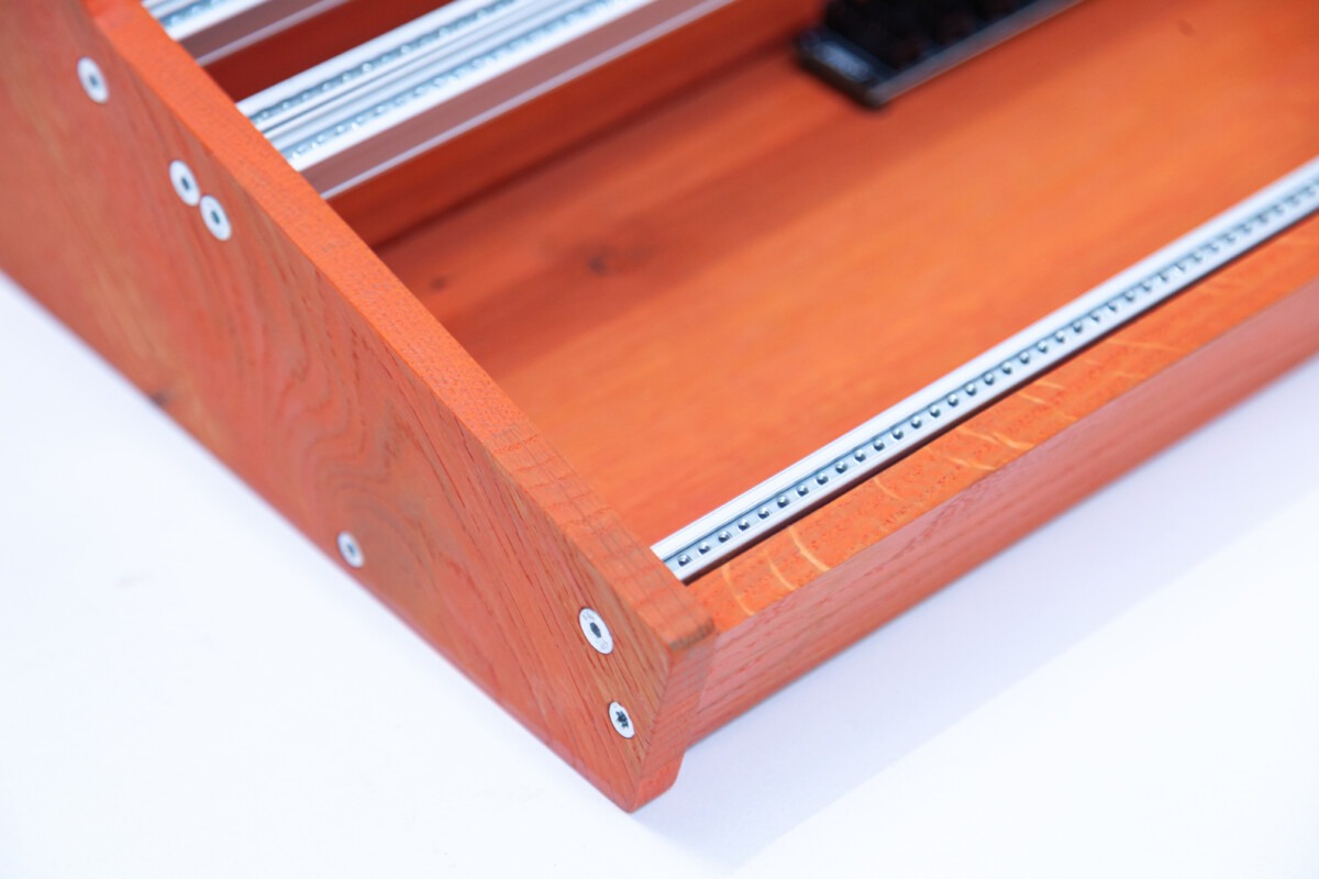 This specific case has been made on client’s request and is one-of-a-kind. If you want your own custom case, feel free to play around our Eurorack configurator. Here you can customize your own case, based on a few starting sizes and templates, then select rails colour & inserts, select the power you need and any other options and we will make it accordingly!