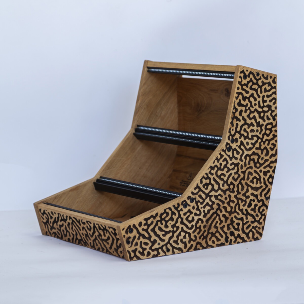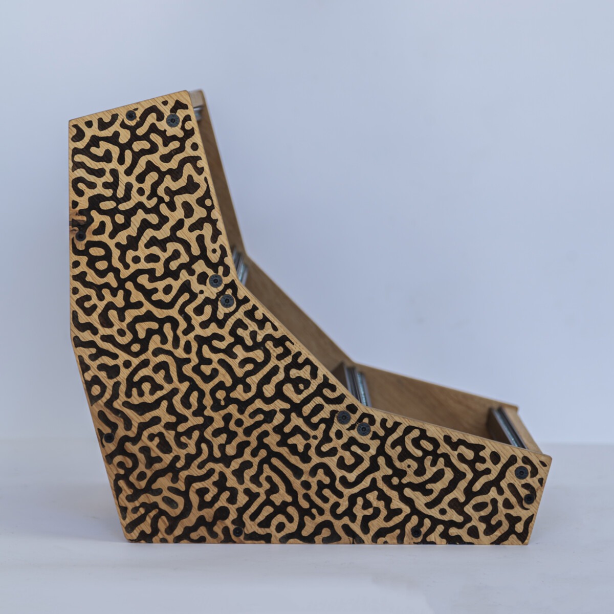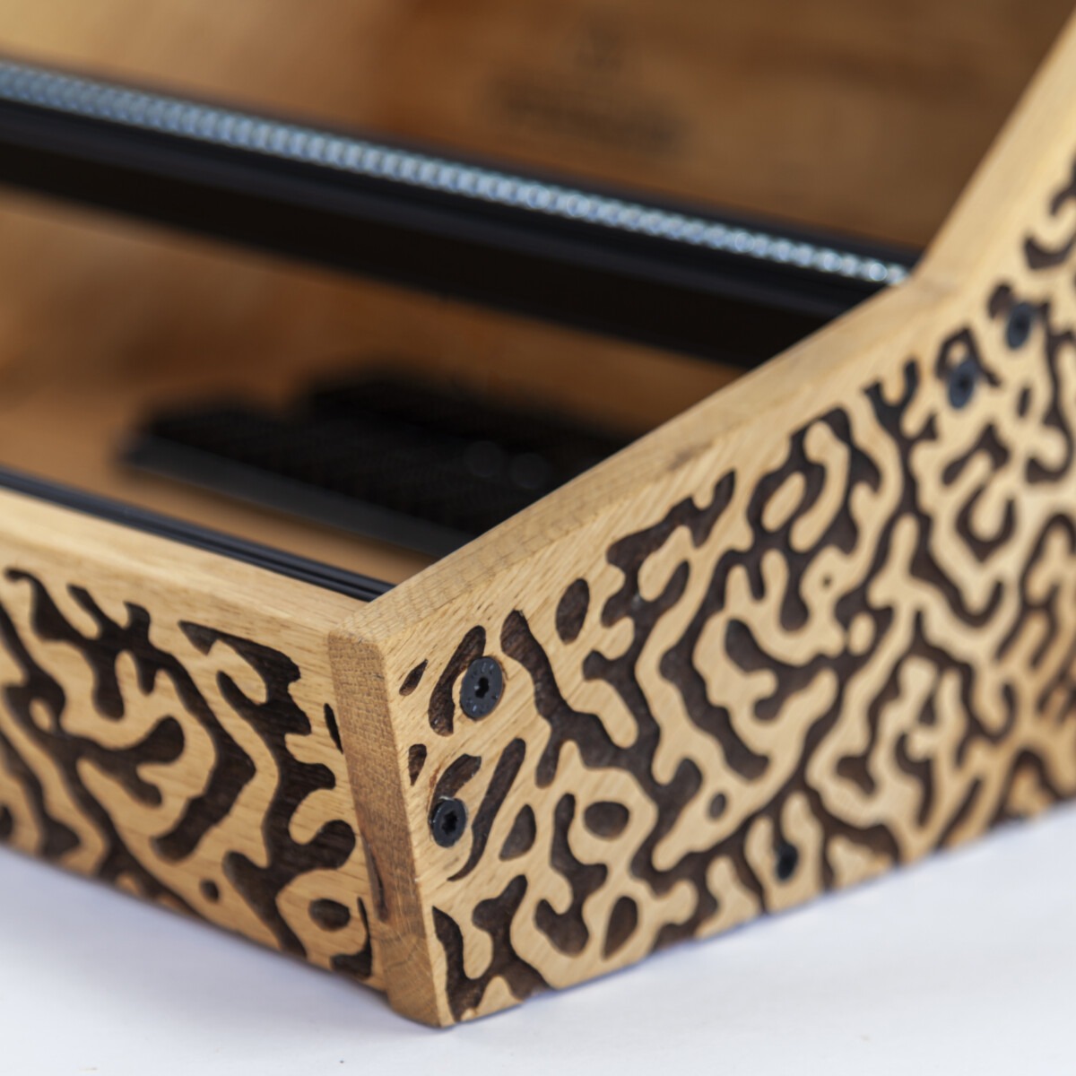 9U 60HP Eurorack case in solid oak with ‘turing pattern’
